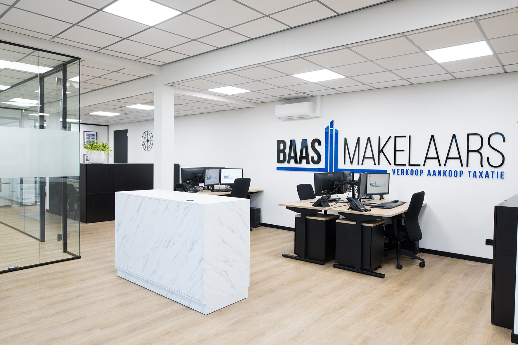 Het nieuwe kantoor van Baas Makelaars te Halsteren is volledigd verbouwd en ingericht door Planeka. We hebben een moderne kantoorinrichting verzorgd waar klanten ontvangen kunnen worden en de werknemers comfortabel kunnen werken.