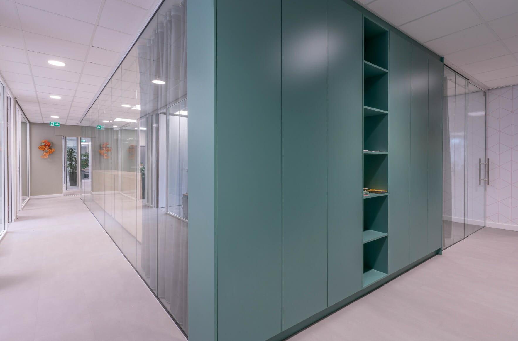 Voor de NVVE te Amsterdam hebben we op de Leidsegracht het kantoor verbouwd en ingericht. De beperkte ruimte wordt zo goed gebruikt voor werknemers en cliënten. Het gebruik van glazen wanden zorgt ervoor dat relatief kleine kamers en gangen ruimer aanvoelen. Er is slim gebruik gemaakt van oplossingen om de ruimte optimaal te benutten, zoals beweegbare wanden om ruimtes samen te voegen. De foto's zijn gemaakt door RS Fotografie.